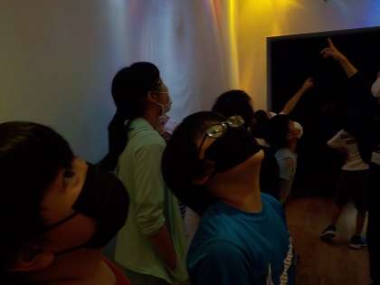 「水面に作品が映っているように見えてとてもきれいだな。」