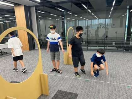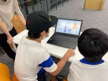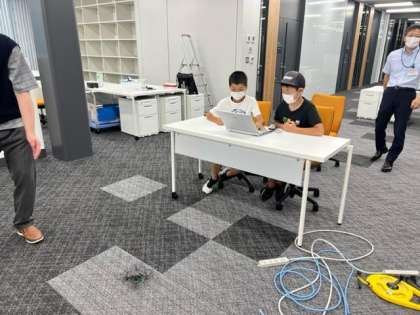 プログラミングクラブの子供たちが参加し、ドローンのプログラム操作を体験しました。