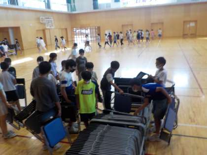始業式後、6年生がてきぱきと片付けをしてくれました。