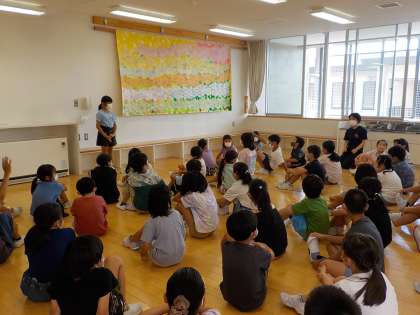 自己紹介を聞いた後は、みんなから質問タイム。「新しい仲間と仲良くしたい!」という思いから、自分の好きなものを紹介しながら、いろいろな質問をしました。