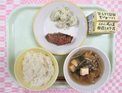 【献立】 ・ごはん ・牛乳 ・魚の利休揚げ ・グリーンポテト ・豆腐スープ