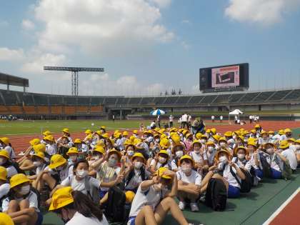 広い競技場。 大勢の6年生が最高の自分にチャレンジしました。