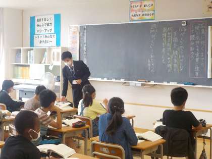 教育実習の先生と学習を進めています。子供たちもすっかり打ち解けたようです。一緒に過ごす時間もあとわずかになりました。子供たちは、名残惜しい思いをもっているようです。