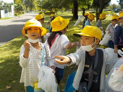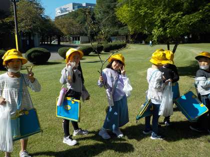 五福公園へ秋見つけをしに出かけました。気持ちのよい天候で、子供たちも嬉しそうでした。落ち葉や木の実、虫など、いろいろな秋を見つけました。