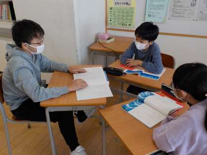 写真上:僕はこう考えた(国語科 「やまなし」)