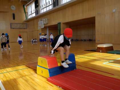 今日の体育の学習では、跳び箱の学習をしました。力強く踏み切り、リズムよく跳ぶことができました。「もっと高い段に挑戦したいな」「少しずつ上手になってきたよ」と話す子供たちでした。
