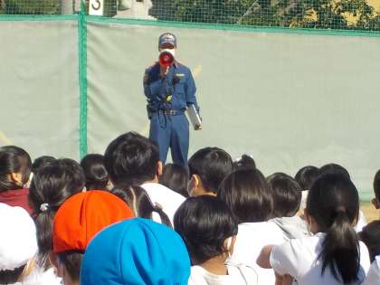 理科室出火の想定で避難訓練をしました。放送を聞き、「おはしも」を守って避難しました。消防署の方にもおいでいただき、訓練の様子についてお話をしていただきました。一つ一つの訓練をしっかりと行い、防災意識を高めていきましょう。