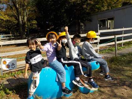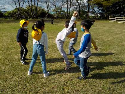 昼食後には、友達と鬼ごっこや花いちもんめ、だるまさんが転んだ等をして楽しく遊びました。