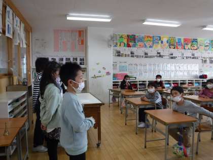 1組では、プロジェクトチームが考えた、クイズ大会をしています。みんなで楽しく考えることができました。