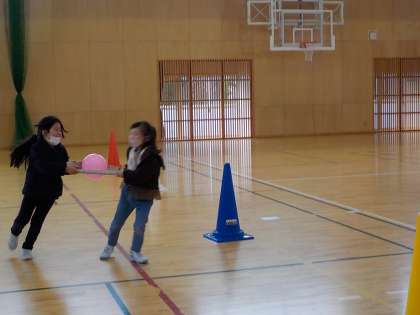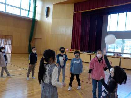 2組では、来週のミニ運動会に向けて、競技の練習をしました。風船を使った競技にみんな思わず笑顔になりました。