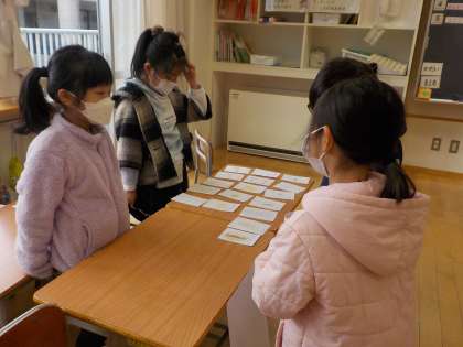 1年生 国語の学習:12月7日(水) 公開日 2022/12/07 更新日 2022/12/07 1・2年生 「ものの名まえ」の学習でおみせやさんごっこをしました。おみせやさんとお客さん役になりきって、活動に取り組みました。