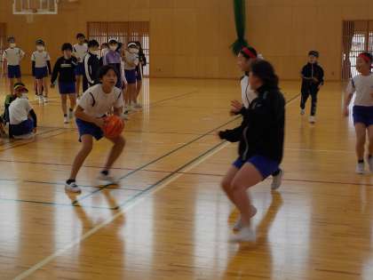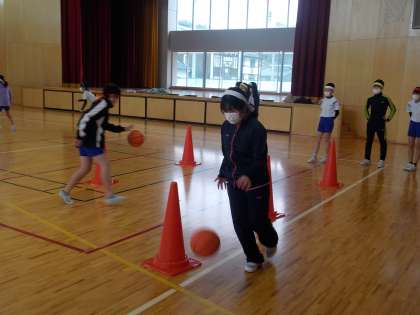 写真上:ドリブル練習 写真中:作戦会議 写真下:ゲーム