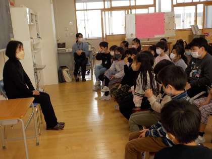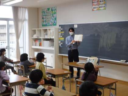 今日は、富山市立図書館の方々が来てくださり、読み聞かせをしてくださいました。「3匹の子ブタ」のお話や言葉遊びの本に、みんな興味津々でした。読書への興味が一層深まったように思います。