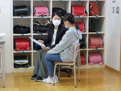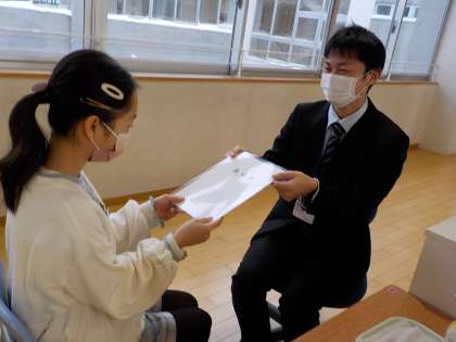 終業式の後は、あゆみ渡しです。先生と一緒に二学期の学校生活を振り返りながら自分の頑張り、成長を確認しました。