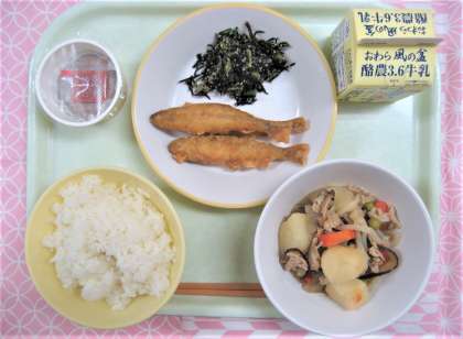 【献立】 ・ごはん ・牛乳 ・わかさぎのフリッター ・ひじきのごま和え ・豚肉の南蛮煮 ・納豆