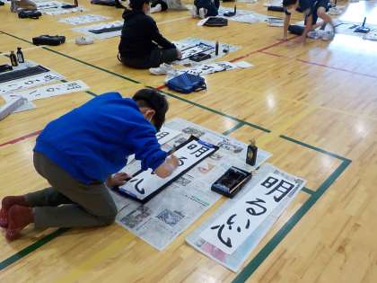 今週は、書き初め大会を行いました。どの子供も、冬休み中の練習の成果を発揮し、よい姿勢で力強く書いていました。これからも、丁寧な字を書けるよう努力してほしいと思います。