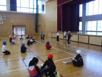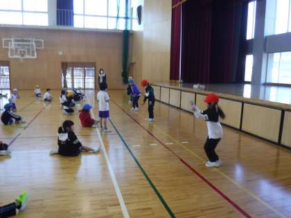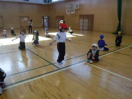 体育の時間に、なわとびをしました。まえ跳びやうしろ跳びに挑戦しました。次の時間は長縄にも挑戦します。