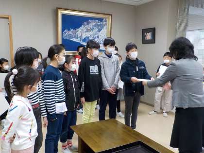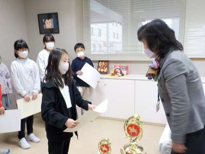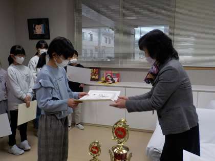 図画、作文、書道、思考大会、ピアノ、体操で授賞した白鳥っ子たち15名が、表彰されました。