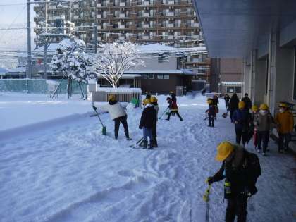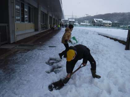 雪が積もると、高学年の子供たちが雪かきをしてくれます。