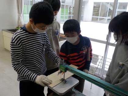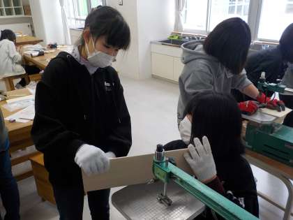 板から小物入れなどを制作中です。 友達とも相談しながら進めています。