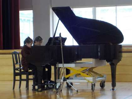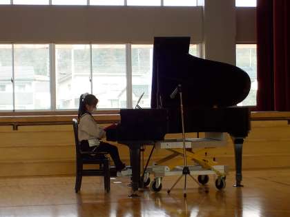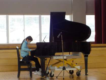 白鳥っ子タイムにミニ自慢集会(コンサート)が行われました。4人の児童が、ピアノの演奏を披露しました。