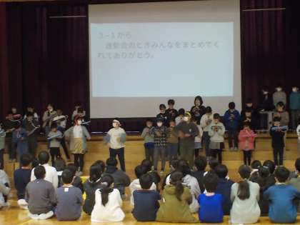 6年生に今までの感謝の気持ちを込めて「ありがとう集会」を行いました。準備を重ね、6年生のために一生懸命取り組んできた子供たち。終わったあとには、仲間と協力することの大切さ、行事を成し遂げる大変さや達成感、様々なことを感じていました。