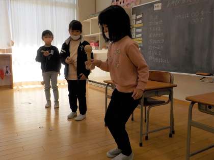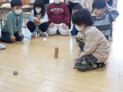 1年生の生活科「あそび名人になろう」の学習では、けん玉やだるま落とし等の昔からの遊びに取り組んできました。これまでの練習の成果を発表しました。
