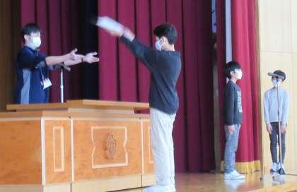 5、6年生合同で卒業式練習を行いました。よい式にしようと、本番さながらの厳かな雰囲気の中で流れを確認しました。