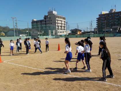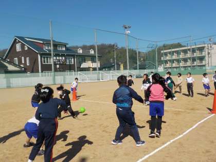 今日は体育の時間にグラウンドでドッジボールをしました。はさみうちでボールをパスしたり、力強いボールを投げたり、とても白熱した試合でした。途中から、ボールの個数を2個に増やして試合を行いました。とても楽しそうな子供たちでした。