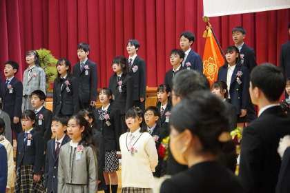 門出の言葉の様子です。これまで学び得たことを胸に旅立ちます。すばらしい歌声が会場に響き渡りました。