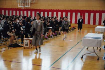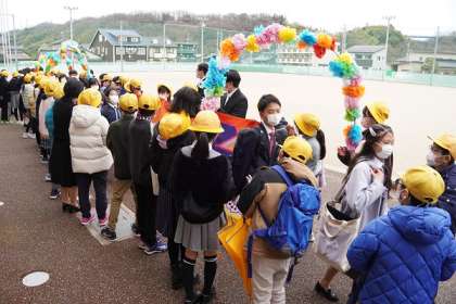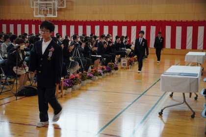 堂々と退場する子供たちです。最後は、教職員・5年生・保護者に見送られ、笑顔で巣立っていきました。