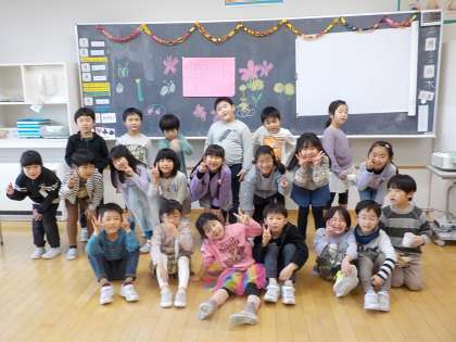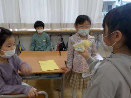 1年1組では、お楽しみ会をしました。先週の学級会でみんながえがおになるための出し物について話し合って決めました。春のボーリングや春のレストランごっこ等をして、楽しみました。
