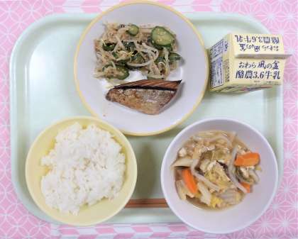 【献立】 ・ごはん ・牛乳 ・ふくらぎの照り焼き ・ごま酢和え ・ちゃんこ鍋