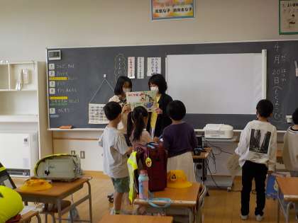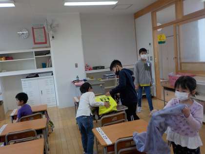1年生の準備のお手伝いを頑張っています。準備が終わったあと読み聞かせをするなど、1年生と関わりを増やそうと一生懸命取り組んでいます。