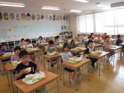 4月28日(金)1・2年生の給食風景