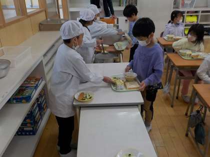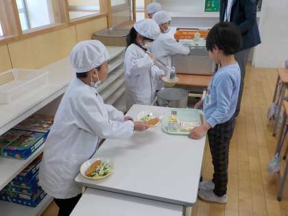 給食当番にも慣れ、自分の仕事をしたり全員が配膳するまで見守ったりすることができるようになってきました。