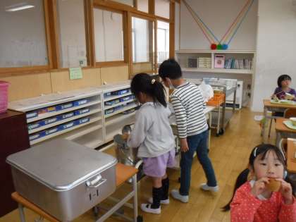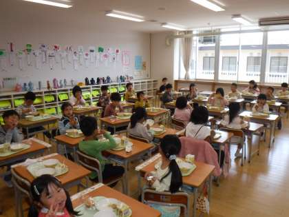 1年生の子供たちは、「みんな、おいしかった!」と言って、ペロリと食べています。おかわりもして、食感やボールは空っぽです。