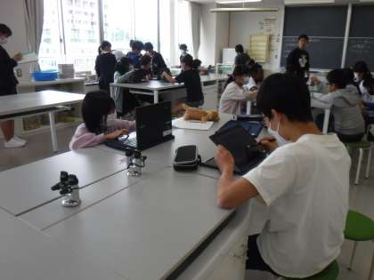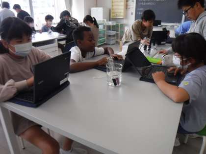5月25日(木)6年生は理科室で唾液の働きを調べる実験を行っていました。ヨウ素液の変化を見て、結果をクロムブックに記録したりしていました。