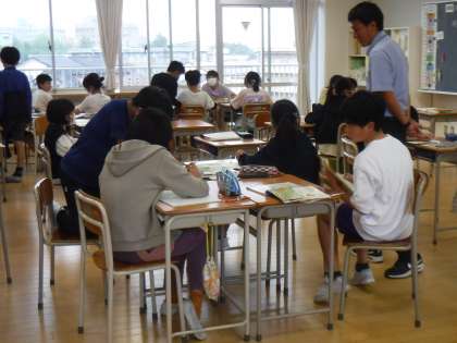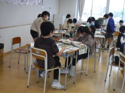 5月29日(月)6年生は、社会科の学習を行っていました。公民分野が終わり、歴史分野に入っています。グループで時代の違いを調べています。