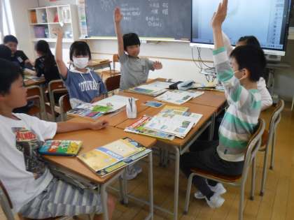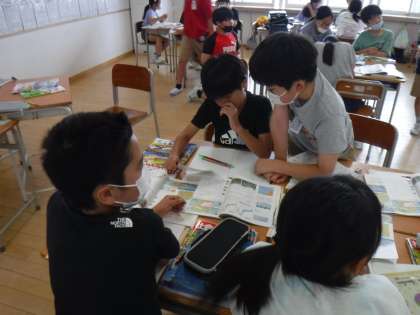 5月31日(水)5年生は社会科の学習で、様々な土地における気候の違いをグラフから捉えていました。グループで活発に意見交換しています。