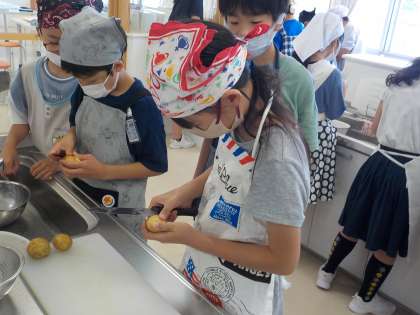 慎重に皮をむき、みんなでおいしく食べることができました。
