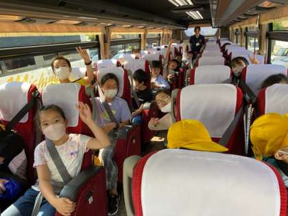 6月7日(水)5年生は宿泊学習にバスで出発しました。よいお天気になりました。
