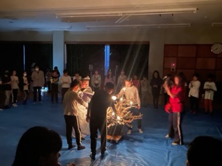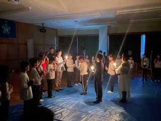 きれいな夕焼けを見た後は、 キャンドルサービスです。 幻想的な炎です。
