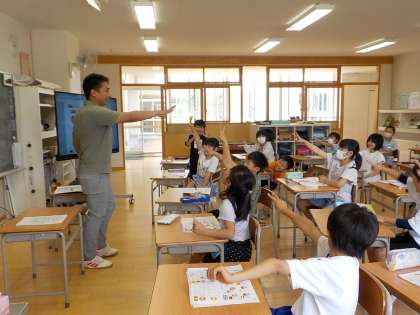 外国語活動では、1〜20までの数を英語で数えたり、ALTの先生といろいろな国の言語でじゃんけんしたりしました。楽しい活動を通して、外国語に親しんでいます。