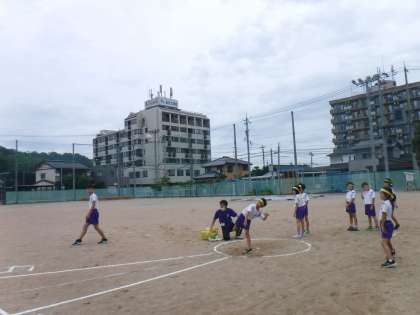 6月12日(金)今日は、3学年ずつに分かれて、スポーツテストの記録会を行いました。最初は、1・3・6年です。