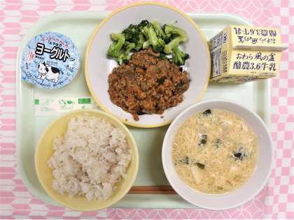 〜今日の給食 6月14日(水)〜 公開日 2023/06/14 更新日 2023/06/14 職員室より 【献立】 ・麦ごはん ・牛乳 ・もりもりマーボー丼 ・ゆでブロッコリー ・かきたま汁 ・ヨーグルト