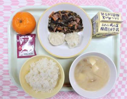 〜今日の給食 6月16日(金)〜 公開日 2023/06/16 更新日 2023/06/16 職員室より 【献立】 ・ごはん ・牛乳 ・えびパオツ ・もずくのチャプチェ ・なめこ汁 ・しそかつおふりかけ ・冷凍みかん