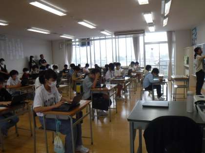 6月16日(金)6年生は学習参観で、情報とのつきあい方を考えました。現在よく取り上げられている、「AI」や「チャットGPT」について、お互いの意見交換をして考えています。クロムブックを用いる学び合いが生かされています。