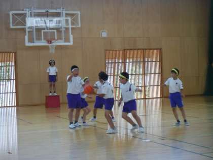 6月20日(火)4年生は、体育科の学習で「ポートボール」を学習しています。チームで攻めや守りを考え、ゲームを楽しんでいます。