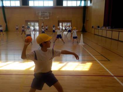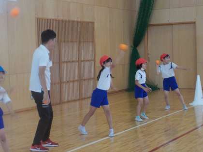 今日のボール投げ教室の様子です。子供たちは指導員の方に教えてもらったコツを意識しながらボール投げを行いました。